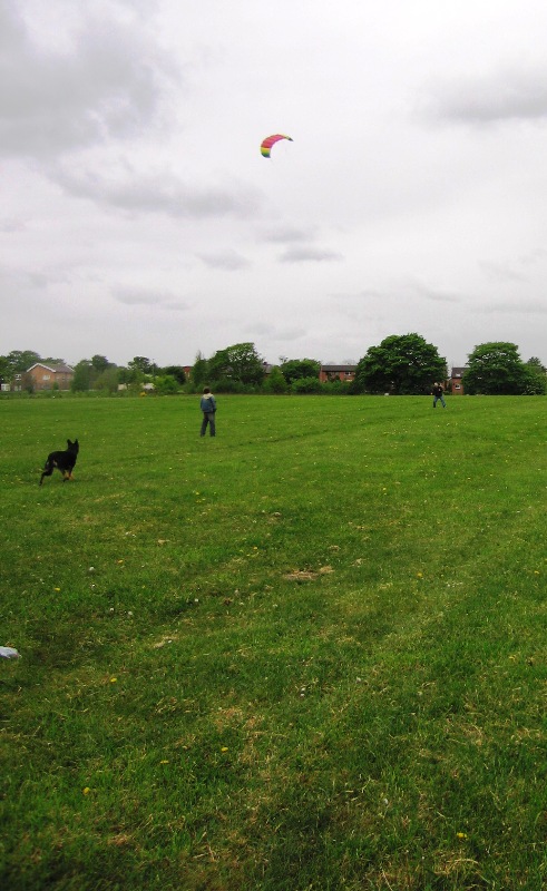 We went flying the power kite earlier. It’s not massive like some of them, but it’s good fun and you’ve really got to concentrate to avoid crashing it into the ground or falling over.