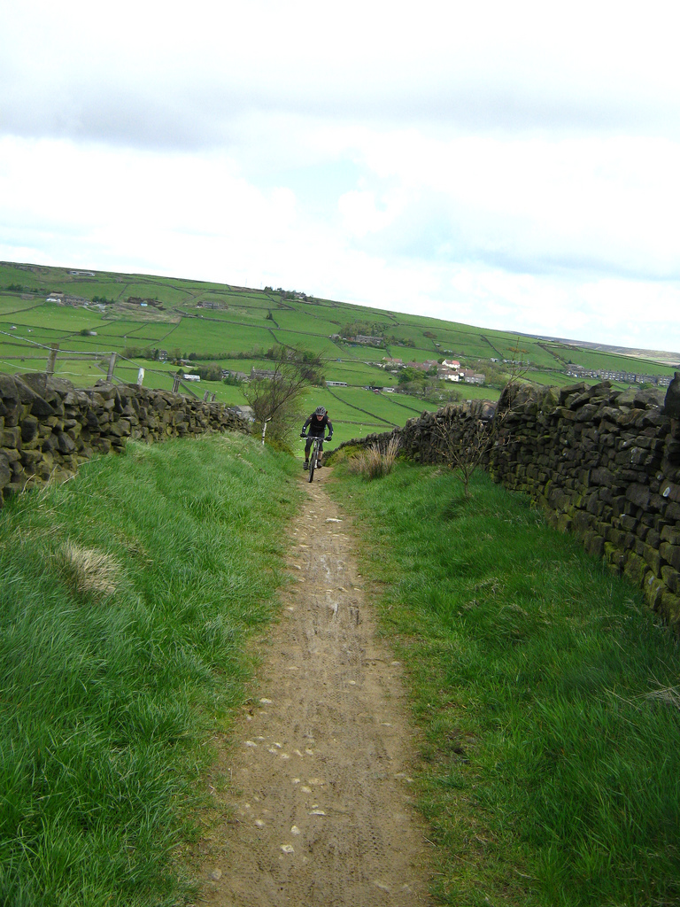 The journey south immediately went a bit wrong – the signage isn’t anywhere near as comprehensive as the MTL and there are sections of this trail that I’ve not ridden for a couple of years (if at all) so we had a short hike-a-bike over some big rocks, through a large hole and (rather fortuitously) back onto the bridleway at one point and a surprise trip to the banks of Holligworth Lake at another point.