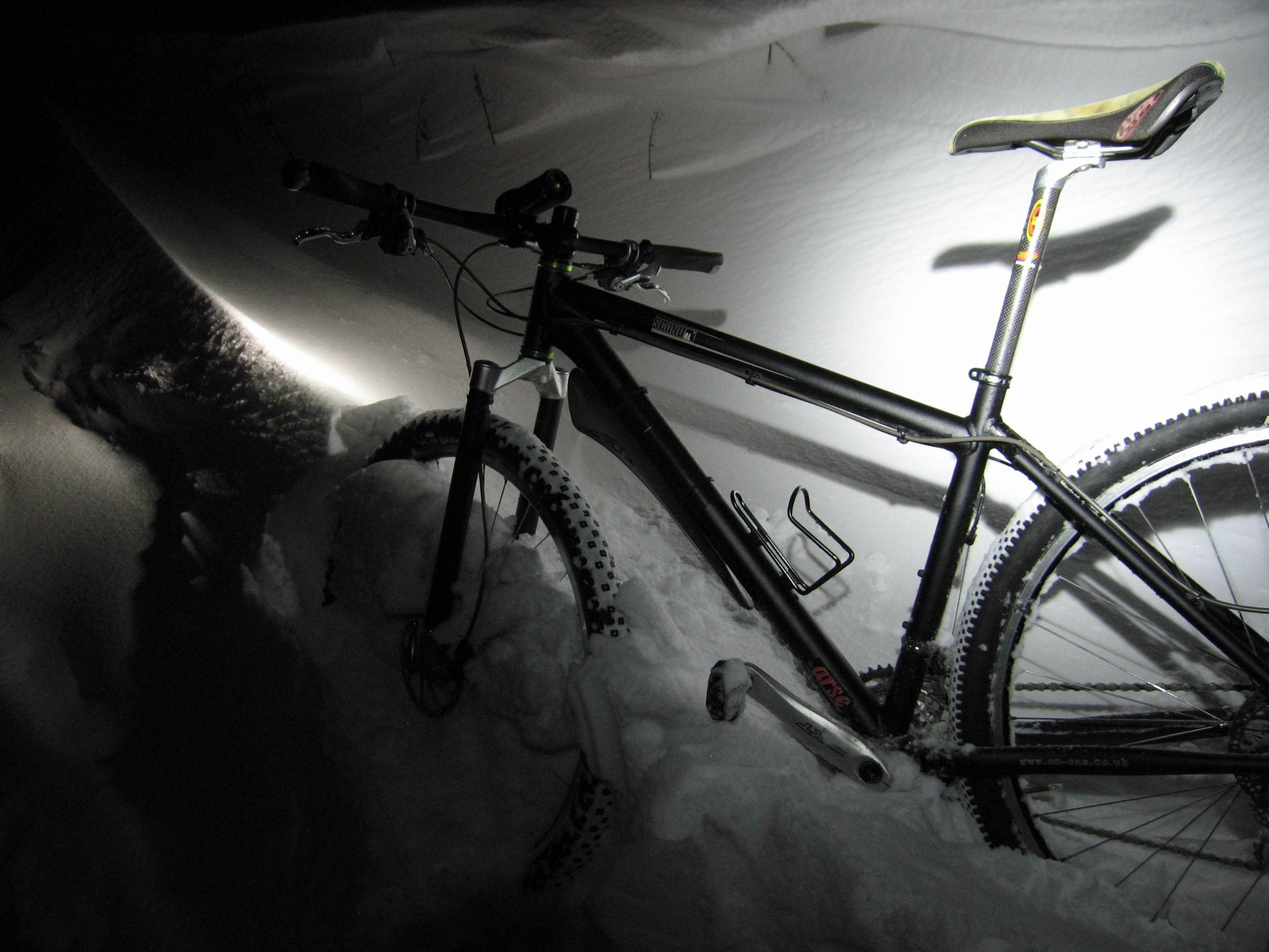 The silly weather arrived all of a sudden, as is usually the case. One day it was chilly, maybe a bit damp in the mornings, the next day BAM the snow was falling and so were the temperatures. It’s currently -10 or something so the turbo trainer has been seeing some serious action. I have also made the effort to get out for rides as usual in the evenings this week as riding in snow is a novelty and as long as it’s not too deep it can be fun…’fun’ in a ‘pedalling is quite a bit harder than usual and you need to be really bloody careful in case you slip on some ice’ kind of way. You know, ‘fun’.