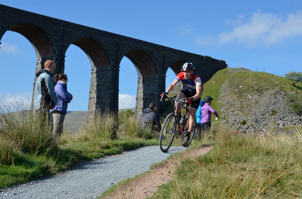 Unusually for me, my descent of Whernside was incident-free, but still pretty slow and “over-careful”. I reached the Ribblehead viaduct, got my usual round of applause for riding down the steps, collected a replacement bottle from Deb and carried on along the road towards the final peak of Pen Y Ghent.